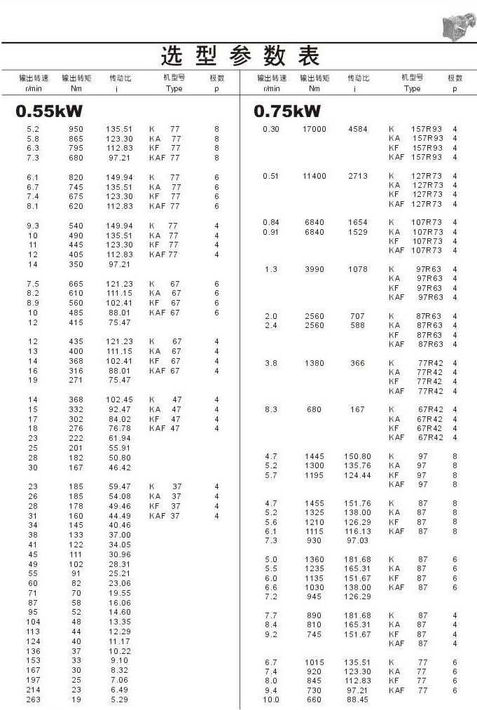 選型參數表0.55kW(續)和0.75kW
