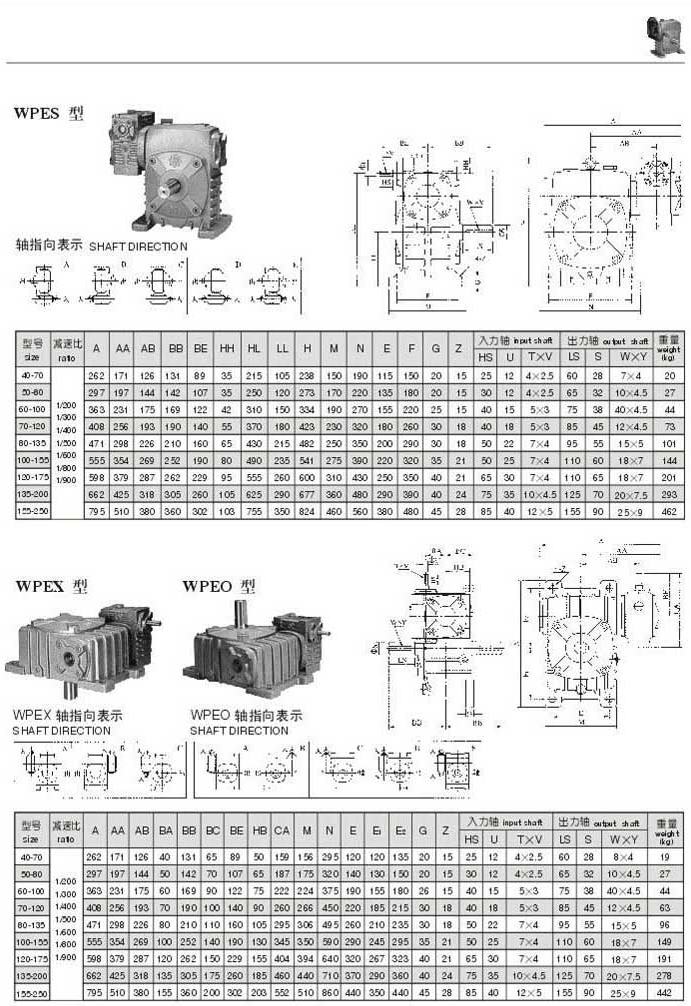 WPES,WPEX,WPEO型型號參數圖表
